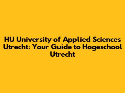 Why Choose HU University of Applied Sciences Utrecht?