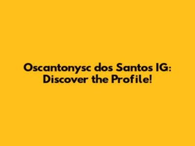 Oscantonysc Dos Santos IG: Discover The Profile!